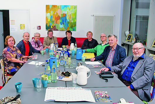 Redaktionsmitglieder sowie etliche Selbstabholer im Stadtteilzentrum Agathof, die die Exemplare in die Auslagestellen bringen